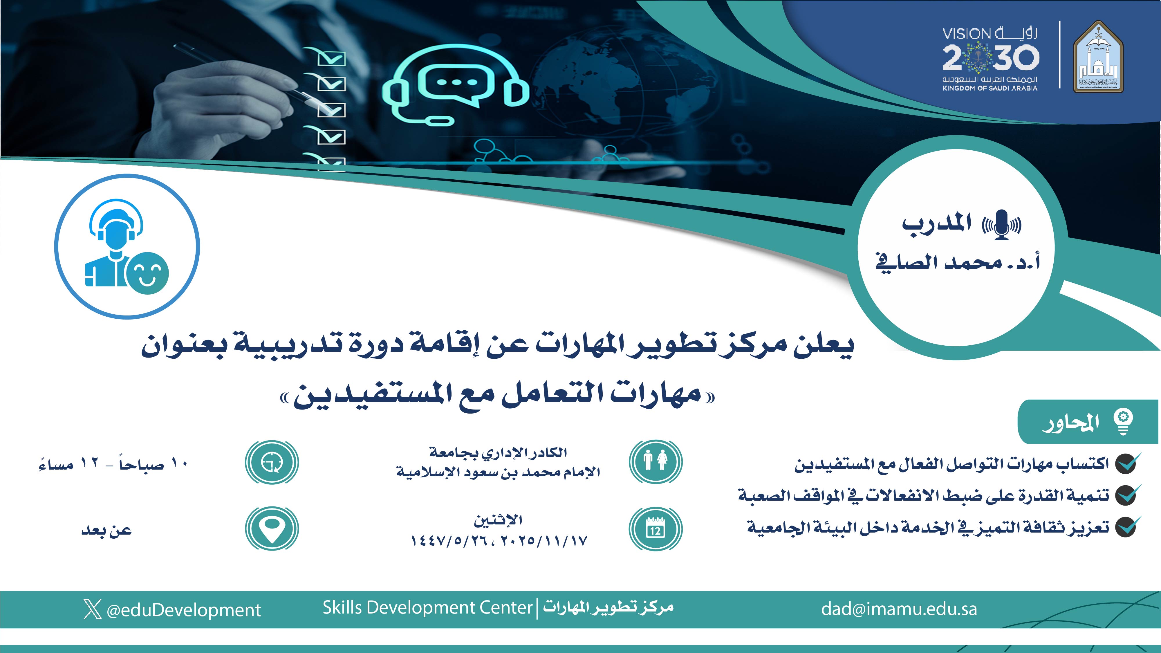 والموجهة إلى الكادر الاداري بجامعة الإمام محمد بن سعود الإسلامية