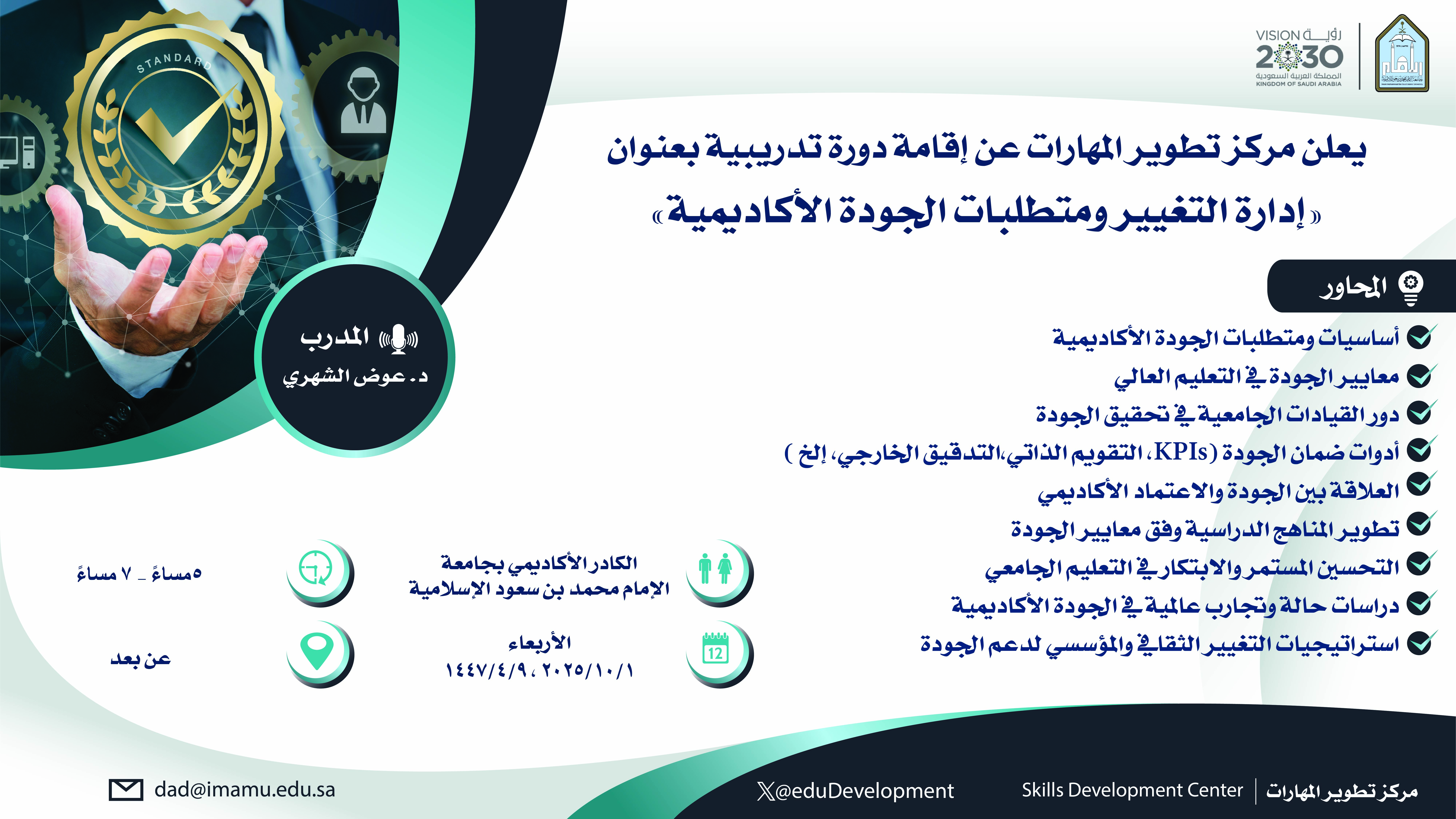 والموجهة إلى الكادر الأكاديمي بجامعة الإمام محمد بن سعود الإسلامية