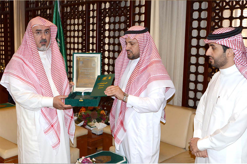 On the last Wednesday, H.E. Prof. Dr. Suliman Aba Al-Khail, Rector of Al-Imam Muhammad Ibn Saud Islamic University, has received a copy of the annual report of King Abdullah Institute for Translation and Arabization from Dr. Ahmad Al-Banyan, Dean of the Institute.