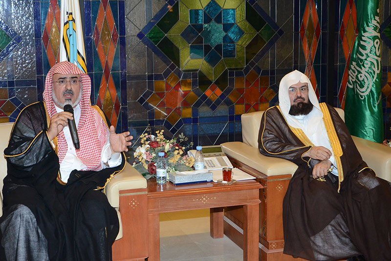 H.E. Prof. Dr. Suliman Aba Al-Khail, Rector of Al-Imam Muhammad Ibn Saud Islamic University, along with the president of General Affairs of Al-Haramain “GPH”, Sheikh Dr. Abdul-Rahman Al-Sudais chaired the special meeting on the agreement of project of King Abdullah bin Abdulaziz, the Custodian of the Two Holy Mosques, for simultaneous interpreting of the sermons, lessons and publications of Al-Haramain.
