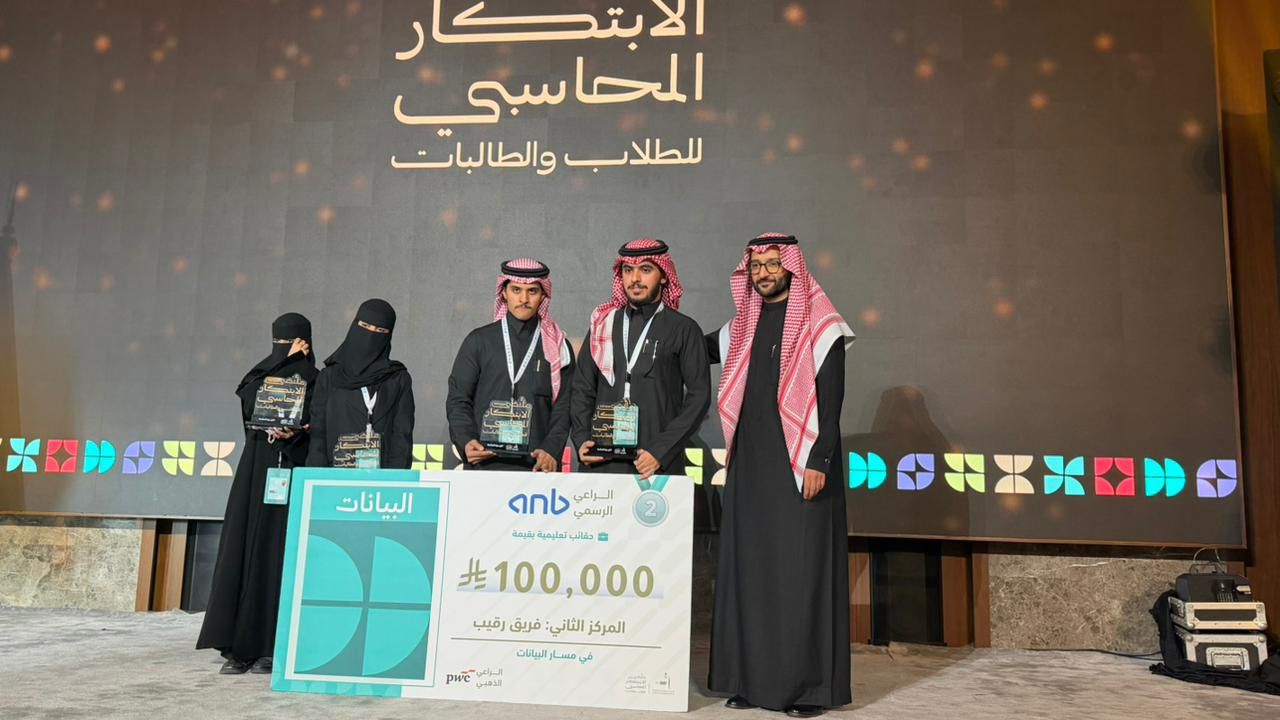 In addition, IMSIU students Shomoukh Al-Mutairi, Layan Al-Omair, Abdulrahman Al-Meshari, and Abdulaziz Al-Sand represented the University in a joint team in the Data track, which focuses on accounting data analysis and predictive modeling using modern technologies, earning second place.