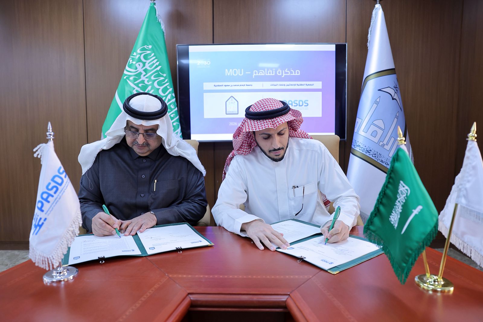 Imam Mohammad Ibn Saud Islamic University (IMSIU), represented by the College of Science, signed a Memorandum of Cooperation on Wednesday, January 21, 2026, with the Professional Association of Statisticians and Data Scientists, as part of its efforts to strengthen specialized professional partnerships and support the fields of statistics and data science.