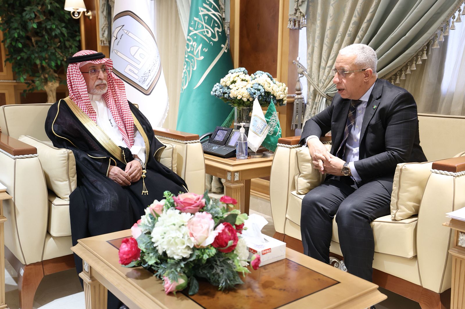 H.E. Prof. Ahmed S. Alaameri, President of Imam Mohammad Ibn Saud Islamic University (IMSIU), received this morning, Tuesday, February 24, 2026, the Ambassador of the Islamic Republic of Mauritania to the Kingdom of Saudi Arabia, Mr. Mokhtar Ould Dahi, during an official visit aimed at strengthening joint academic and educational cooperation and exploring opportunities to expand partnership between the University and Mauritanian universities.