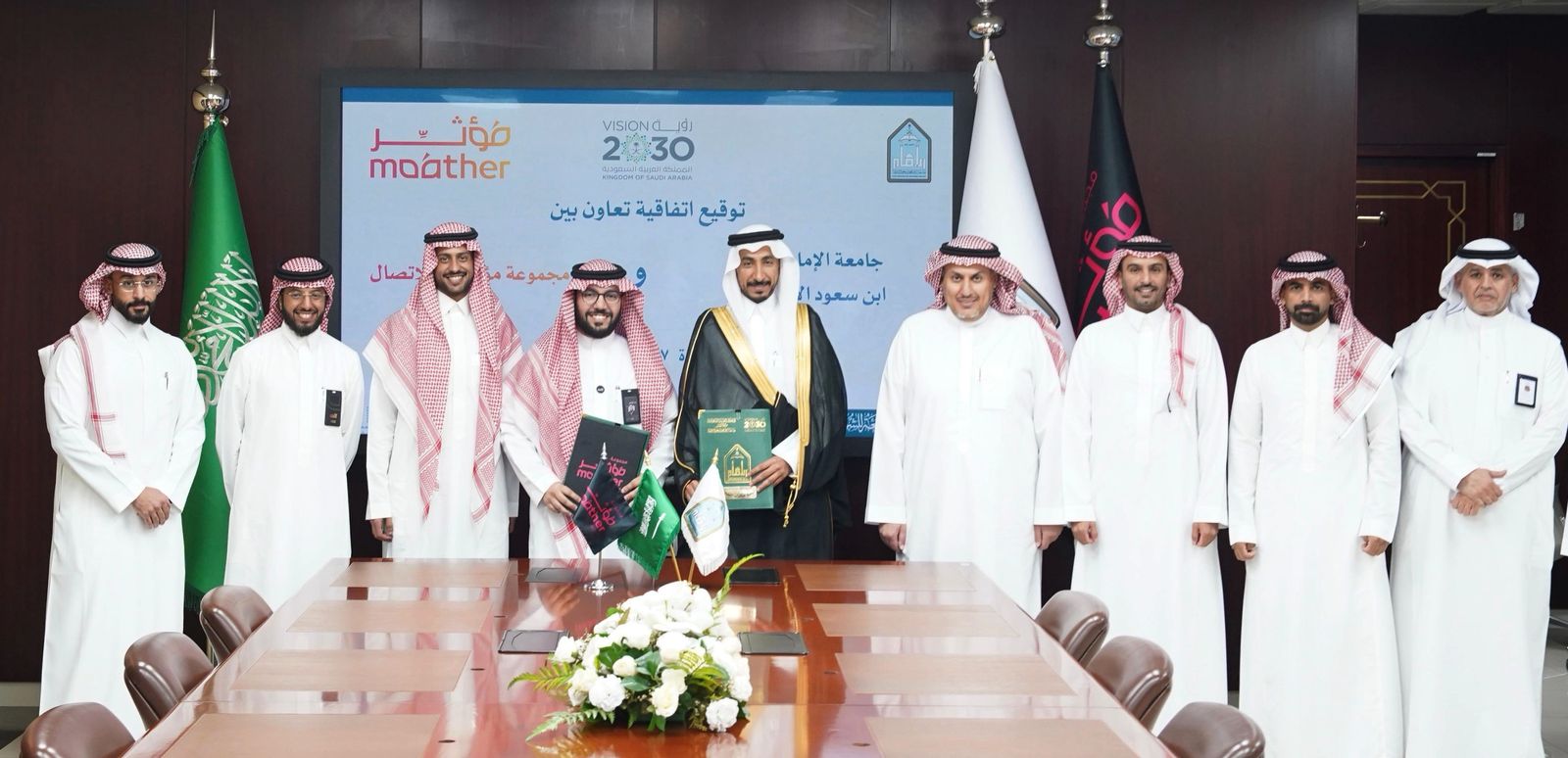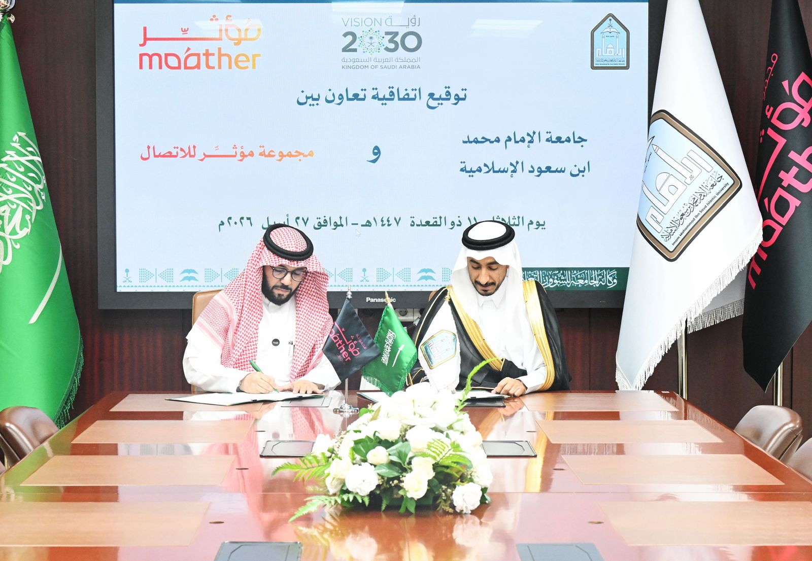 Imam Mohammad Ibn Saud Islamic University signed a cooperation agreement on Tuesday, April 28, 2026, represented by the Administration of Gifted and Talented Students, with Moather Marketing Services Company, with the aim of strengthening joint collaboration in discovering, nurturing, developing, and empowering gifted and high-achieving students.