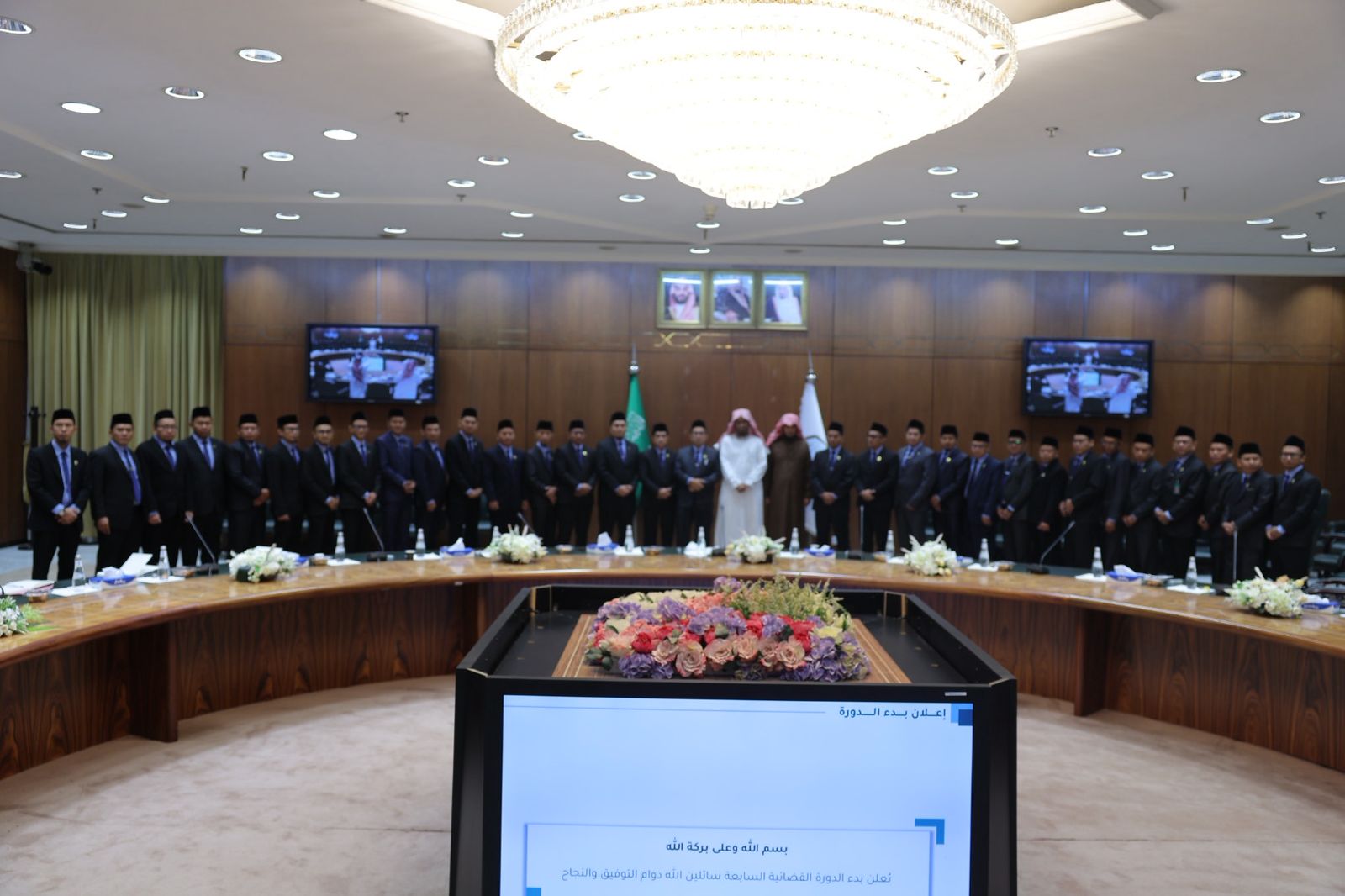 Enhancing Knowledge Exchange with Judicial Institutions in Brotherly and Friendly Countries, the Higher Judicial Institute at Imam Mohammad Ibn Saud Islamic University (IMSIU) held a specialized judicial training program on Monday morning, February 2, 2026, for judges from the Republic of Indonesia. The two-week program is attended by 32 judges and is being held in the Round Hall, as part of the Institute's initiatives to strengthen international judicial cooperation and promote the exchange of academic and practical expertise.