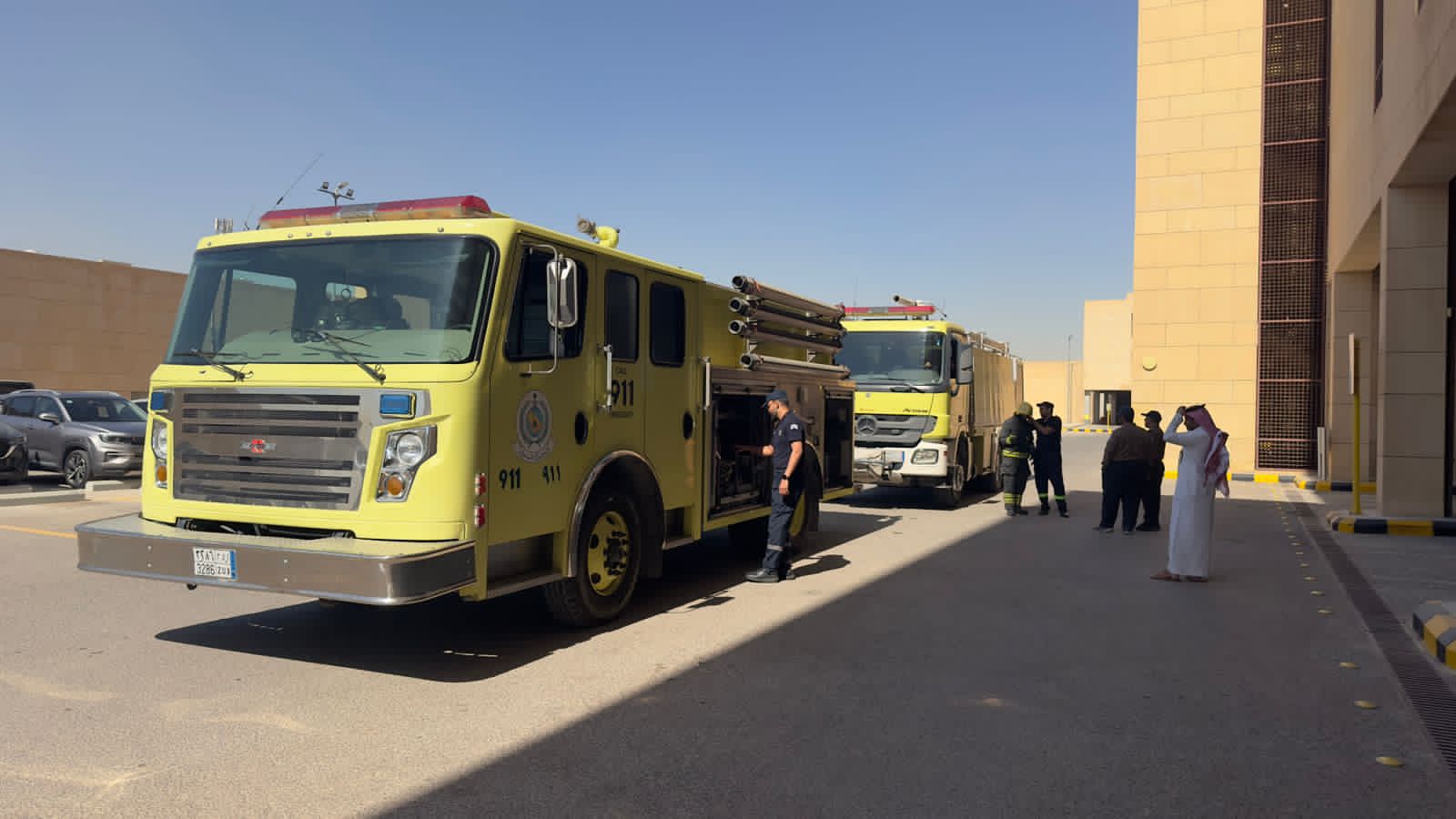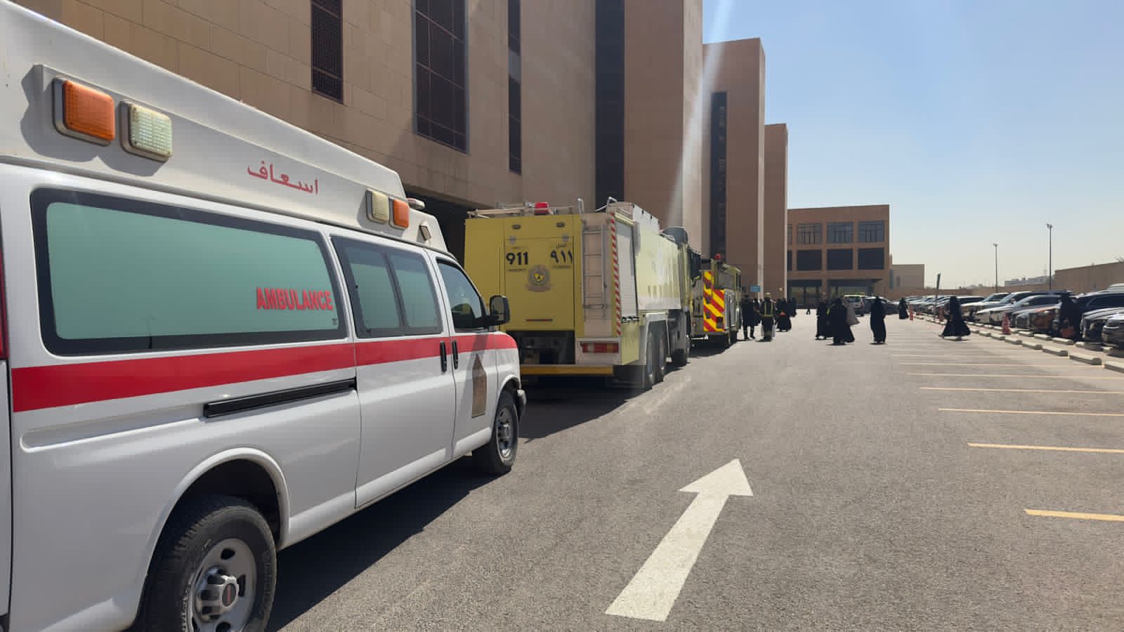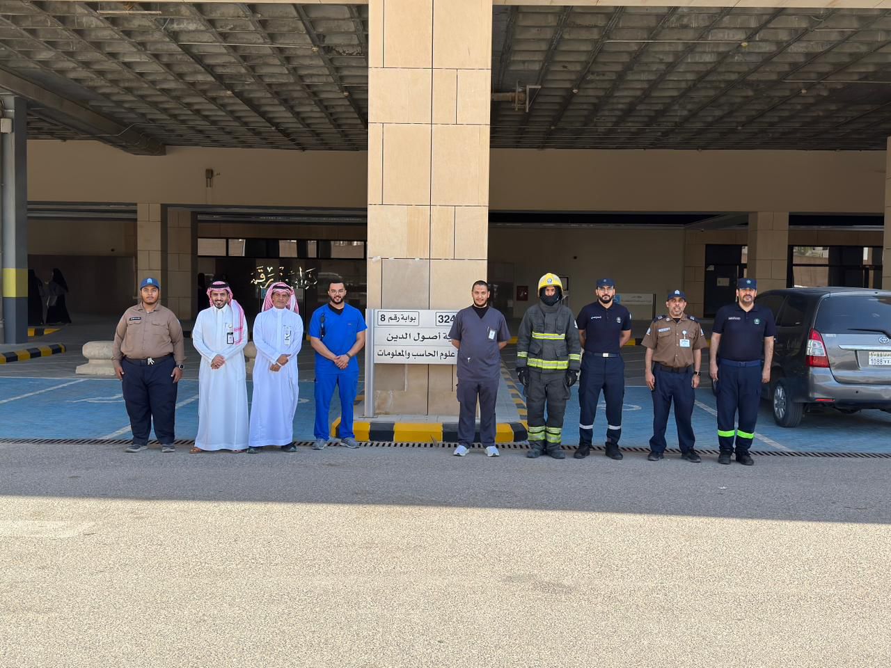 The drills were held in cooperation with the General Directorate of Civil Defense and the University Medical Center, and attended by Dr. Hayat M. Al-Subyani, Vice President of the College of Fundamentals of Religion and Da'wah, Ms. Fawzia A. Al-Buhairey, Head of Safety at King Abdullah City for Female Students, along with faculty and staff members from the College of Fundamentals of Religion and Da'wah, the College of Computer Sciences, and the General Directorate of Security and Safety, as well as a number of IMSIU students.