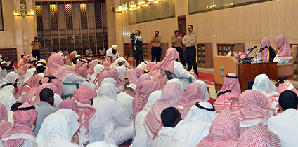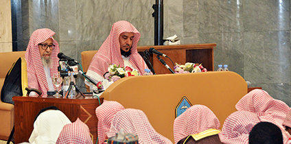 برعاية معالي مدير الجامعة أ.د. أحمد سالم العامري أقيمت محاضرة بعنوان (وصايا وتوجيهات) اليوم الثلاثاء الموافق 18 / 1, لمعالي الشيخ الدكتور صالح بن فوزان الفوزان عضو هيئة كبار العلماء في جامع خادم الحرمين الشريفين بالجامعة بحضور عدد من وكلاء الجامعة، وعدد من مسؤوليها وأعضاء هيئة التدريس والطلاب ونقلت لمدينة الملك عبدالله للطالبات بحضور وكيلة الجامعة لشؤون الطالبات الدكتورة حنان بنت عبدالرحمن العريني وعدد من مسؤولات المدينة وأعضاء هيئة التدريس والطالبات.