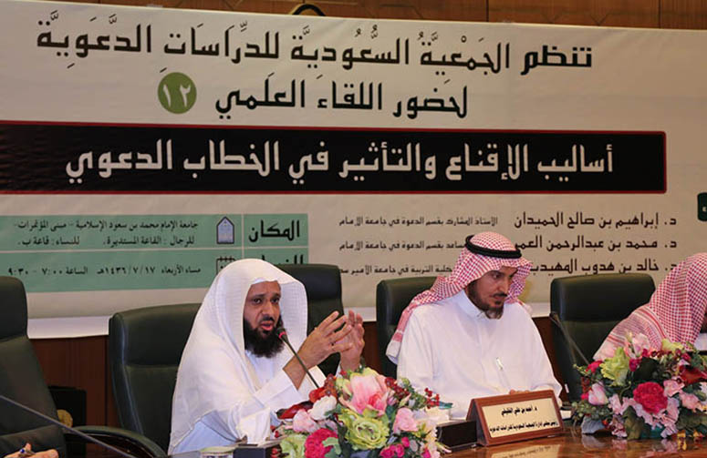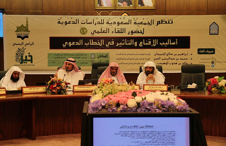 عقدت الجمعية السعودية للدراسات الدعوية (بصيرة) لقاءً علميًا تحت عنوان " أساليب الإقناع والتأثير في الخطاب الدعوي " يوم الأربعاء 1436/7/17هـ وذلك بالقاعة المستديرة بمبنى المؤتمرات بجامعة الإمام محمد بن سعود الإسلامية .