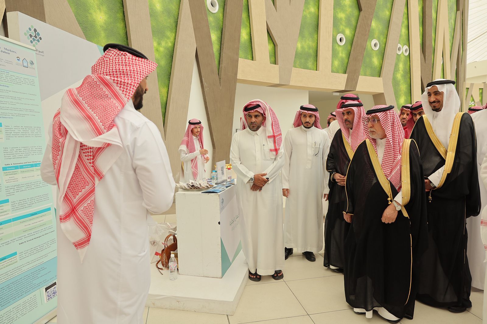 وقد انطلقت الفعالية بجولةٍ تعريفية للمعرض، أعقبها حفل الافتتاح الذي شهد كلمةً ترحيبيةً ألقاها عميد الكلية، رحّب فيها بالحضور، مؤكدًا أن “إكسبو الأعمال البحثية" يُمثل منصةً متميزةً لعرض الأبحاث والإبداعات الطلابية من جميع المستويات البكالوريوس، والماجستير، والدكتوراه، وأشار د. الراشد إلى أنّ المعرض يهدف إلى تطوير مهارات التواصل الأكاديمي، وتعزيز الثقة بالنفس لدى الطلبة، وبناء شبكاتٍ أكاديمية مثمرة، وتحسين جودة البحوث قبل نشرها.