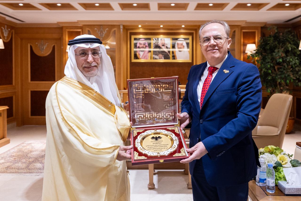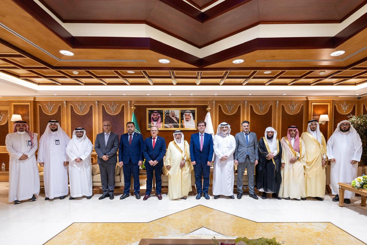 وفي بداية اللقاء رحّب معالي رئيس الجامعة أ.د. العامري بالوزير والوفد المرافق له، معربًا عن سعادته بهذه الزيارة، ومؤكدًا أن جامعة الإمام محمد بن سعود الإسلامية بما تمتلكه من تاريخ علمي راسخ وتنوع أكاديمي واسع، قد حققت حضورًا مميزًا في التصنيفات العالمية وأسهمت في تخريج قيادات بارزة في مختلف المجالات، وأوضح معاليه أن هذا التنوع والانتشار يعكس قدرة الجامعة على بناء شراكات فاعلة مع المؤسسات التعليمية حول العالم، مشيرًا إلى حرص الجامعة على توظيف خبراتها في مجالات البحث العلمي والاعتماد الأكاديمي، وتطوير المناهج لتعزيز التعاون مع وزارة التعليم العالي في سوريا، وأكد معاليه استعداد الجامعة التام لبناء شراكات استراتيجية بين الجامعة والجامعات السورية؛ من خلال تبادل أعضاء هيئة التدريس والطلاب، وإطلاق برامج ومشاريع مشتركة تخدم التنمية في البلدين وتحقق التكامل في مجالات التعليم العالي والبحث العلمي.