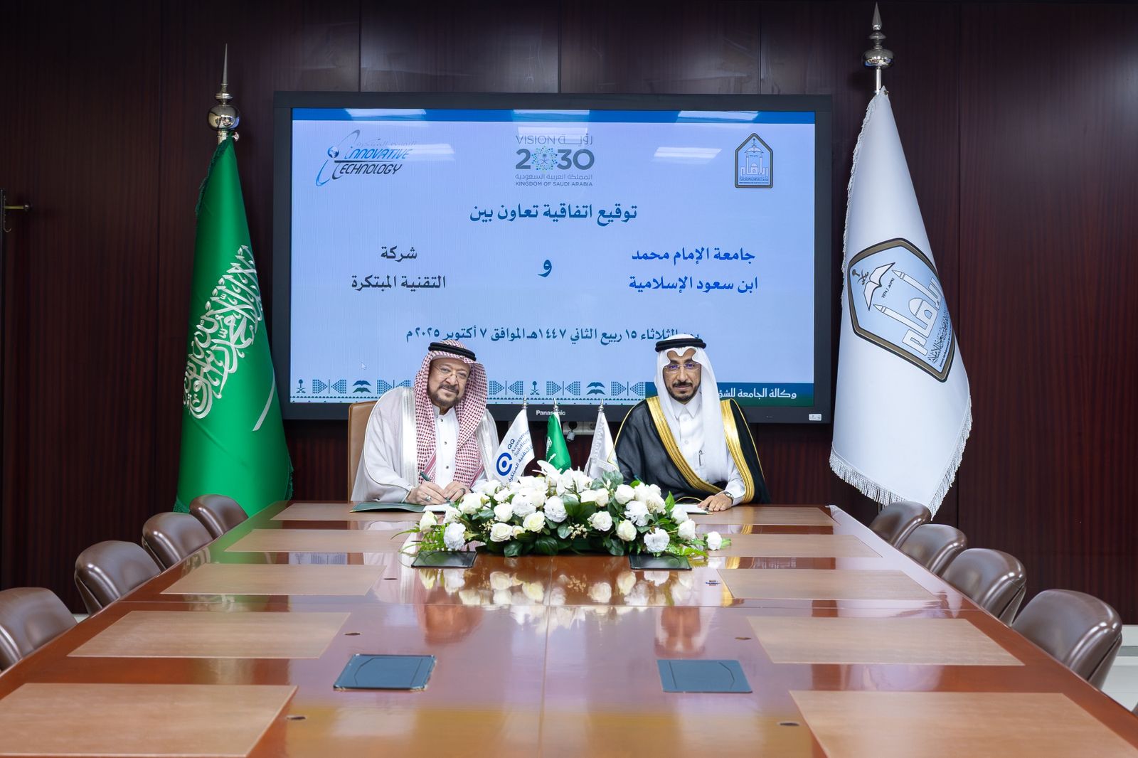وقّعت جامعة الإمام محمد بن سعود الإسلامية ممثلةً بوكالة الجامعة للشؤون التعليمية اليوم الثلاثاء 7 /10/ 2025م اتفاقية تعاون مع شركة "التقنية المبتكرة"، بهدف تعزيز التعاون المشترك بين الجامعة وشركة "التقنية المبتكرة".