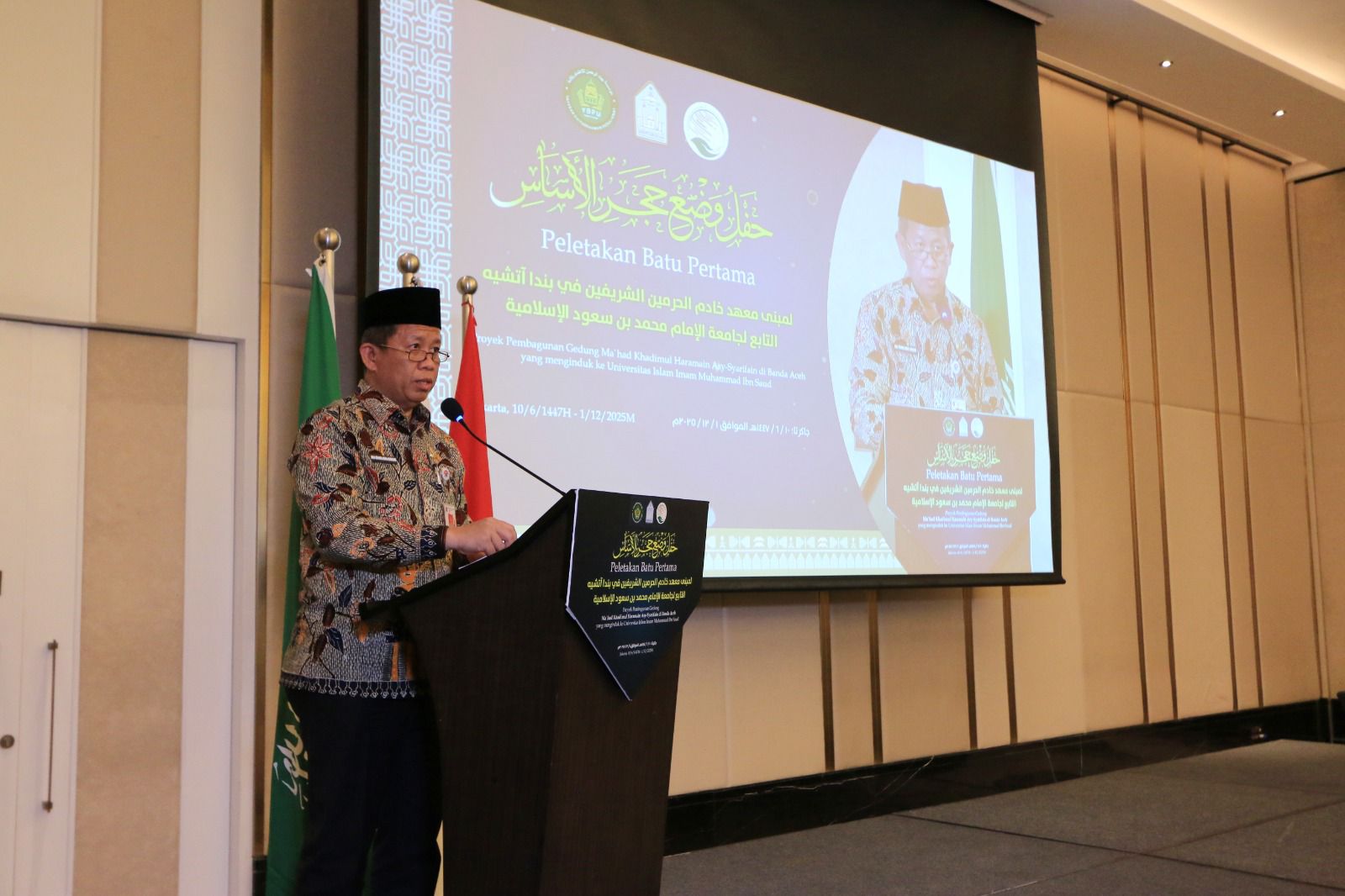 رعى معالي رئيس جامعة الإمام محمد بن سعود الإسلامية أ.د. أحمد بن سالم العامري، اليوم الاثنين 2025/12/1، حفلَ وضع حجر الأساس للمبنى الجديد لمعهد خادم الحرمين الشريفين في بندا آتشيه التابع للجامعة، وأحد فروعها في جمهورية إندونيسيا، الذي يأتي بتمويلٍ من مركز الملك سلمان للإغاثة والأعمال الإنسانية بمبلغ (46,346,760 ريالًا سعوديًا)، على الأرض الممنوحة من نظارة أوقاف مسجد رايا بيت الرحمن؛ تحقيقًا للتنمية المستدامة بتعاون القطاع الحكومي والقطاع غير الربحي.