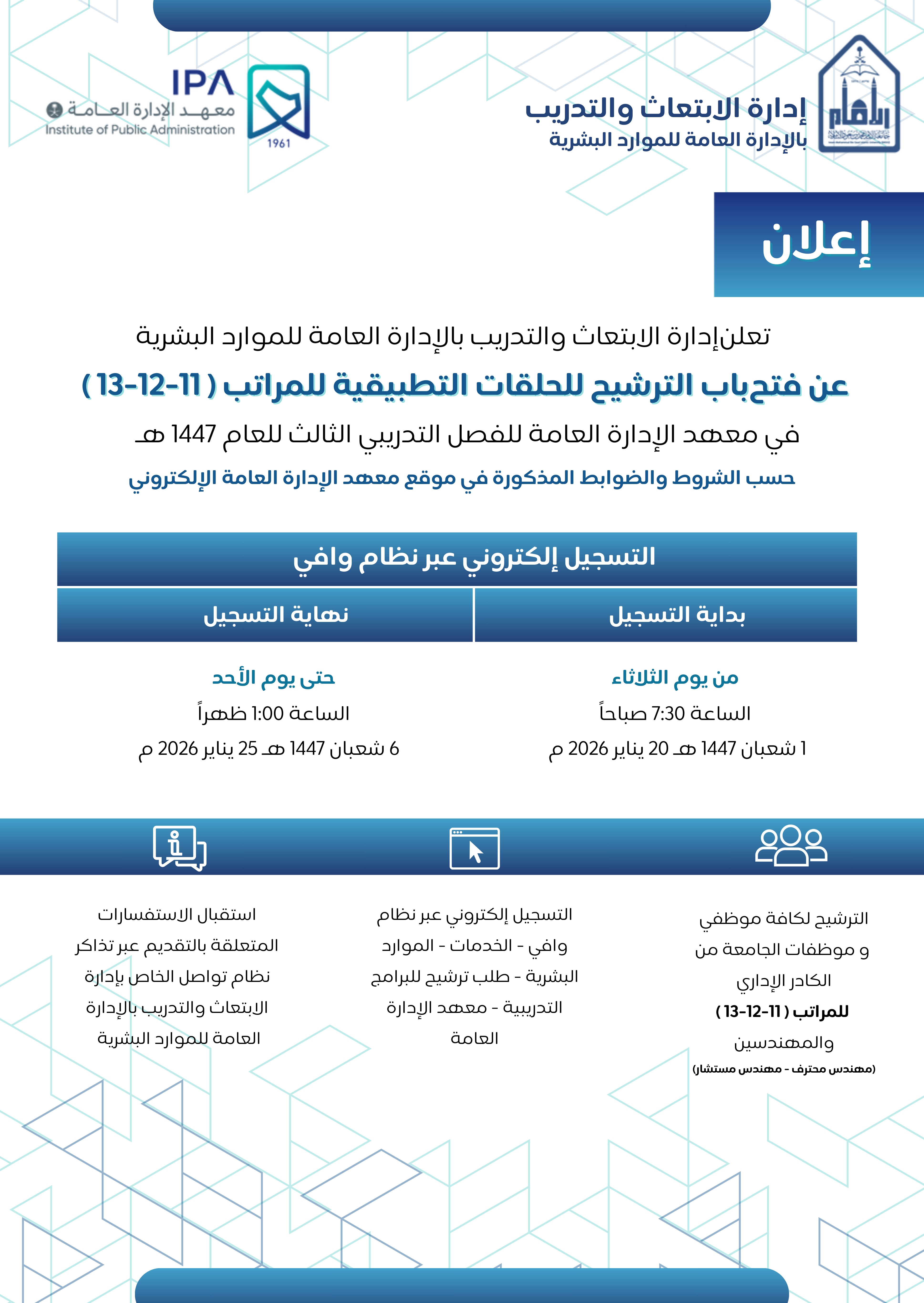 ﻓﻲ ﻣﻌﻬﺪ اﻹدارة اﻟﻌﺎﻣﺔ ﻟﻠﻔﺼﻞ اﻟﺘﺪرﻳﺒﻲ الثالث ﻟﻠﻌﺎم 1447 هـ